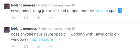 Powershell -> xplat-cli -> to use jq.exe |  |