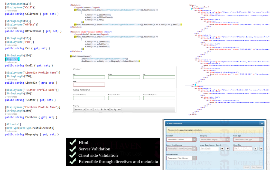 T4Scaffolding to create DisplayTemplates,EditorTemplates from model, convention based REST endpoint for model, Result is a SPA AngularJS/Bootstrap app. DRY - Don't Repeat Yourself